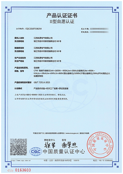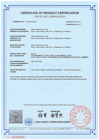 母线槽CFW 3C认证